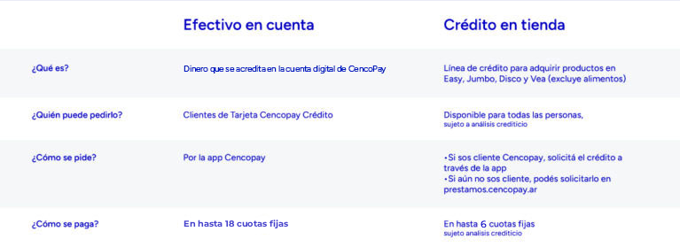 Elegí el préstamo que mejor se adapte a lo que necesitás: Crédito en tienda o Efectivo en cuenta